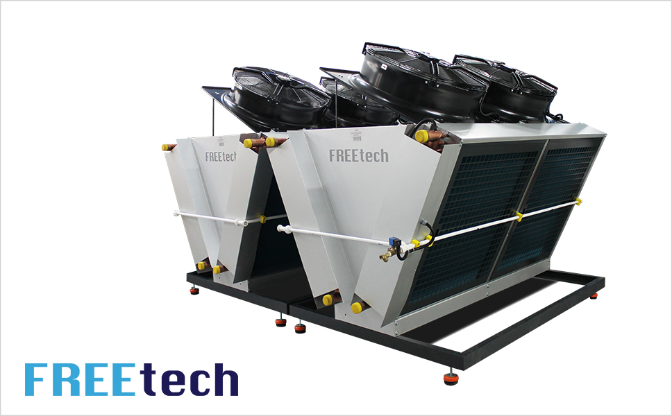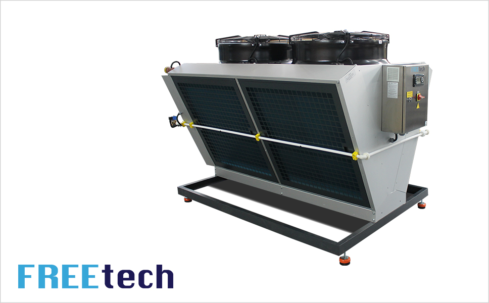 A FREETECH adiabatikus (nedves-száraz) hűtő, amely kompresszor nélkül működik. Normál üzemben levegős hőcserélőként (dry cooler) működik, de meleg időben a párolgásos (adiabatikus) panelok aktiválódnak: a hőcserélő felülete előtt elhelyezett permetezőrendszer vízpermetet fúj, ami lehűti a beáramló levegőt.