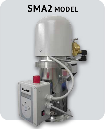 A Marse SMA és SMAT sorozat vákuumos felszívó, amely pneumatikusan szállítja a granulált anyagot a tárológaratból közvetlenül a fröccsöntő vagy extruder gép garatjába. Az inox kivitelű tartály és szívócső abrazív anyagokhoz is megfelelő. Az egyfázisú SMA modellek kis és közepes gépekhez ideálisak, a háromfázisú SMAT modellek nagy kapacitású gyártósorokhoz készültek. Az elektronika arányos szelepre előkészített.