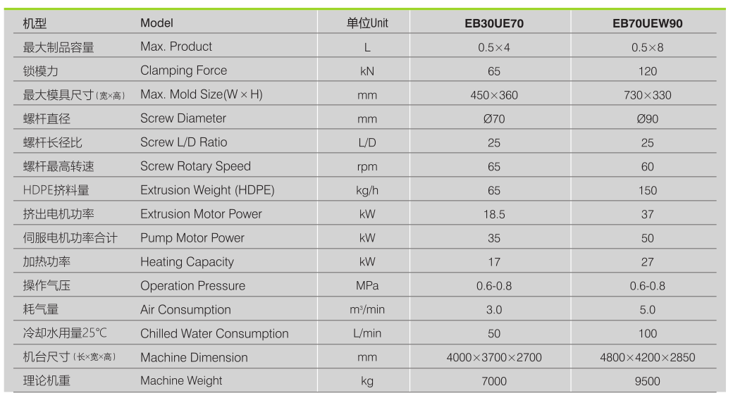 Az extruderes palackfúvó gépeink szervóhidraulikus rendszerrel vannak ellátva, így a fogyasztása 30-40% -a hagyományos gépekhez képest.